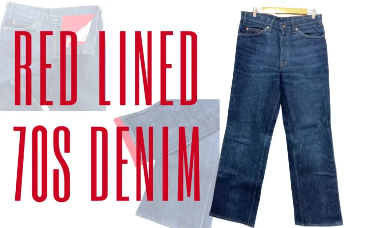 70年代のシャモアライニング仕様デニムを紹介。ストア系USA製、SCOVILLジップや装飾ボタンなど当時らしいディテール、赤い裏地の魅力を解説します。