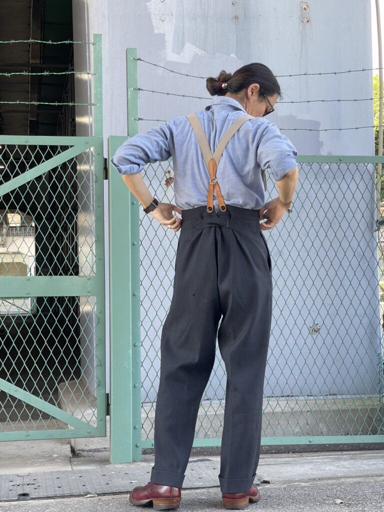 40年代のフレンチワークパンツに合わせた瞬間、もうベルトには戻れなくなりました笑